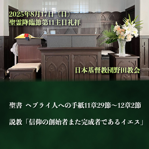 ※来週8月17日のCSは夏期学校になるため、いつもの9:15ではなく、 11:30開始となりますのでご注意ください。