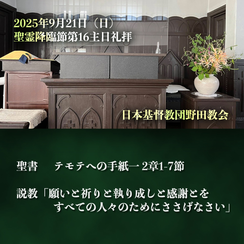 説教 「願いと祈りと執り成しと感謝とをすべての人々のためにささげなさい」