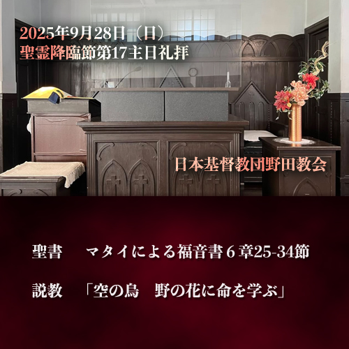 説教 「空の鳥 野の花に命を学ぶ」 近藤國親牧師