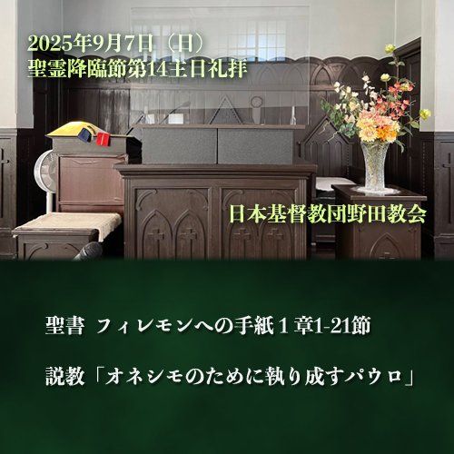 ■ 2025年9月7日(日)10時半〜 聖霊降臨節第14主日礼拝