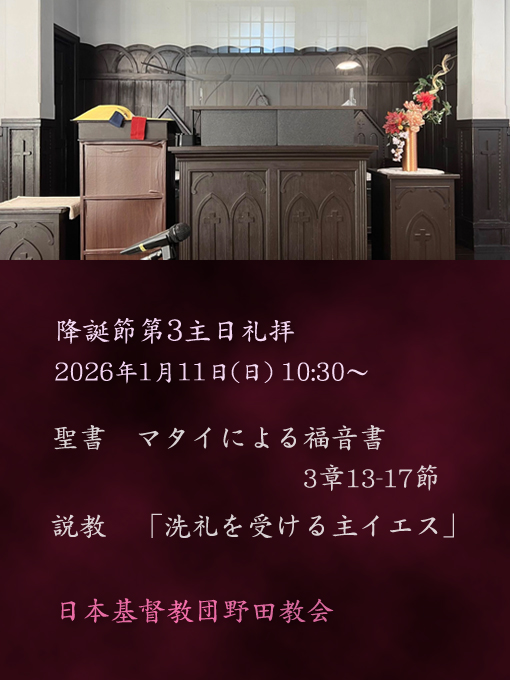 ■ 2026年1月11日(日)10時半〜 降誕節第3主日礼拝