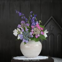 ■ 5月31日(日)ペンテコステ礼拝の聖壇の花 庭に咲いていた、タチアオイ、飛燕草、セージ & ルー。 飛燕草の紫は遠目にも認識できますが、 セージの濃い紫は背景の壁に同化し、 遠目にはカメレオンのごとく姿を消しています …