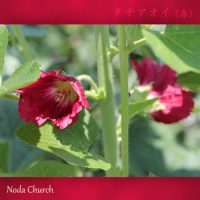 聖壇にはピンクのタチアオイを用いましたが、赤のタチアオイもあります。 まだ咲き始めたばかり。 タチアオイは下から上に花が咲いていきます。