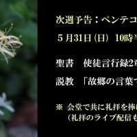 ■2020年5月24日(日)午前10時半〜 復活節第7主日礼拝 聖書 ヨハネによる福音書17章1-11節 説教 「御名によって彼らを守ってください」 今週も在宅礼拝。教会から礼拝をライブ配信いたします。 トップページにリ …