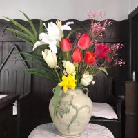 ■ チューリップ イースター礼拝の聖壇の花々。 紅白のチューリップが明るさと元気を与えてくれます。 朝はつぼみが堅く締まり、チューリップらしい愛らしいシルエットだったのですが、 礼拝後は花が開いていました。 …