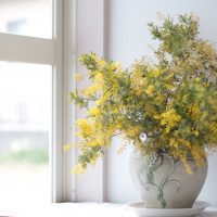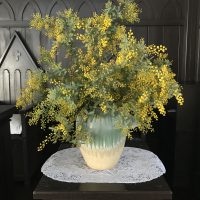 ■ ミモザ 玄関に活けたミモザ。 庭に咲いていたのですが、 本当はミモザは春の花。 今咲くのは季節外れですが、 今年は暖冬のため、早く咲いたようです。 まだ満開ではなく、蕾の部分も多いのですが、 この後、咲 …