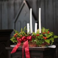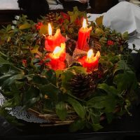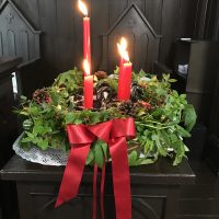 ■ アドベント・キャンドル(待降節第4主日) 4本目のキャンドルに火が灯りました。 (炎は礼拝中、ぎりぎり持ちこたえました。) 残ったキャンドルの姿は、もはやアート!?