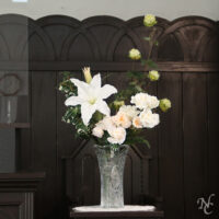 2023年7月15日 聖書研究(案内)礼拝聖句と花、時々猫聖壇の花