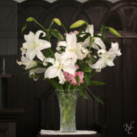 2023年4月15日 聖書研究(案内)礼拝聖句と花、時々猫聖壇の花今日の生花