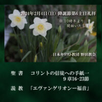 2024年2月4日(日)10時半〜 降誕節第6主日礼拝