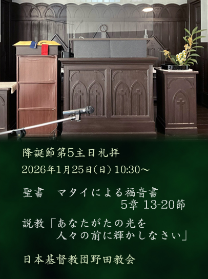 ■ 2026年1月25日(日)10時半〜 降誕節第5主日礼拝