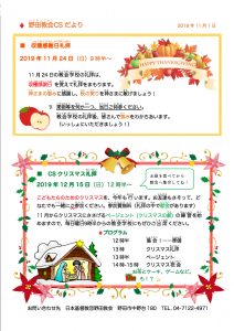 11月からクリスマスにささげるページェント (クリスマスの劇) の練習を始めますので、毎日曜日9時半からの教会学校にもぜひご出席ください。